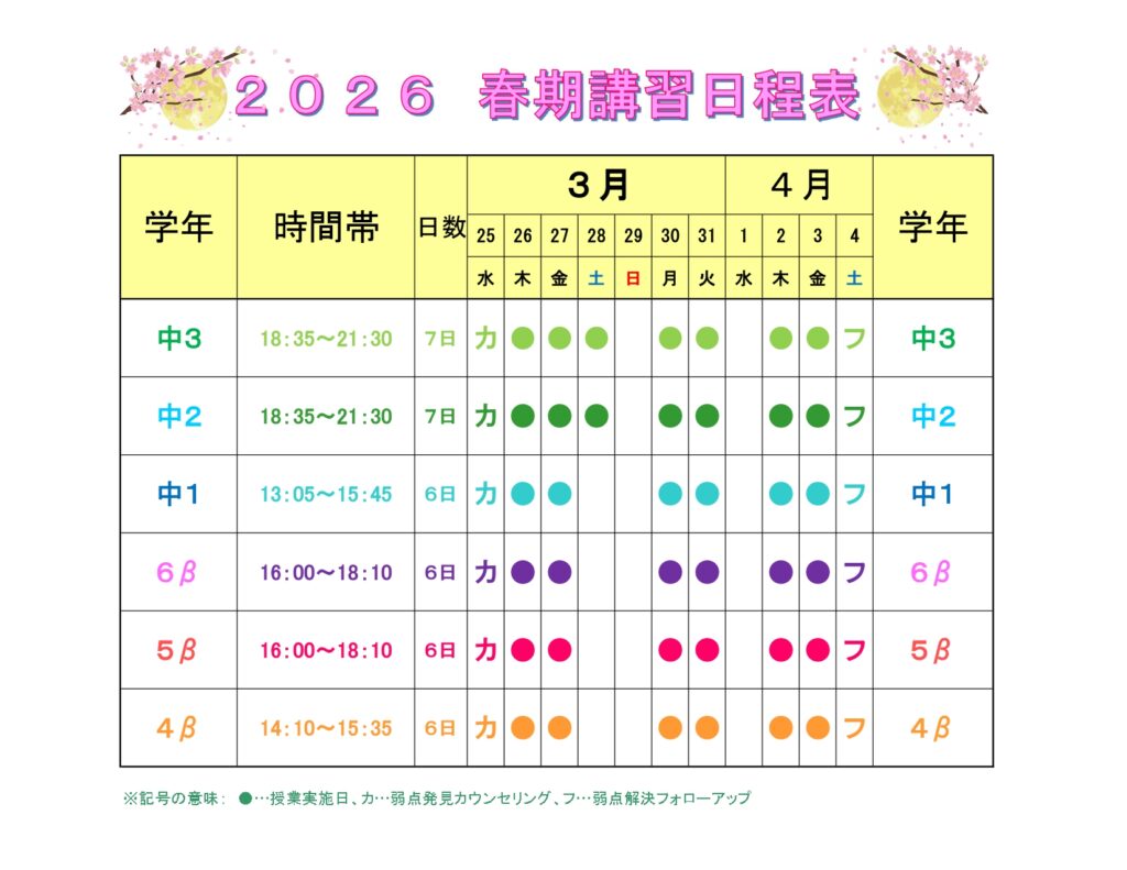 春期講習体験授業受付中!! (3/26~4/3)