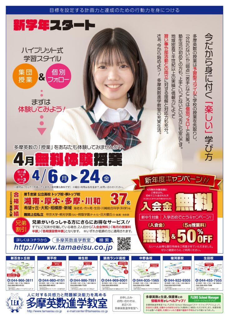 | 塾名 教室名 | 多摩英数進学教室 柿生校 |